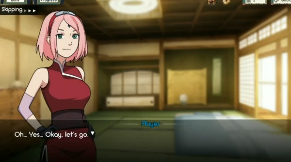 Kunoichi Trainer es un juego narrativo en el que acompañas a un protagonista que llega a una aldea de ninjas inspirada en los mundos clásicos del anime. La base es una novela visual: avanzas leyendo diálogos, escenas ilustradas y tomando decisiones de texto que influyen en lo que ocurre después.