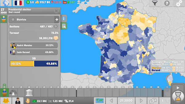 La versión para Android conserva la esencia del juego original, adaptando sus funciones a controles táctiles y ofreciendo una experiencia fluida, profunda y accesible. Con un mapa global totalmente interactivo, más de 150 países disponibles y un avanzado sistema legislativo, te permite crear, modificar o derogar leyes, negociar con partidos y moldear la dirección del Estado según tus ideas.