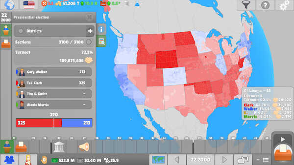 Lawgivers II APK ofrece una serie de características únicas que lo distinguen dentro de la simulación política y lo convierten en una herramienta extraordinaria para explorar distintos escenarios gubernamentales.
