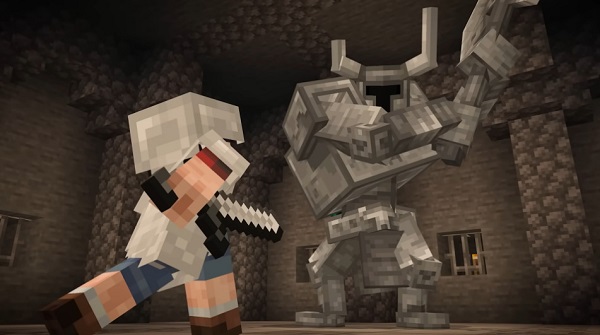 Su gigantesca hacha puede destruir bloques y lanzar poderosos golpes. Sin embargo, tiene una debilidad que los aventureros más atentos sabrán aprovechar.