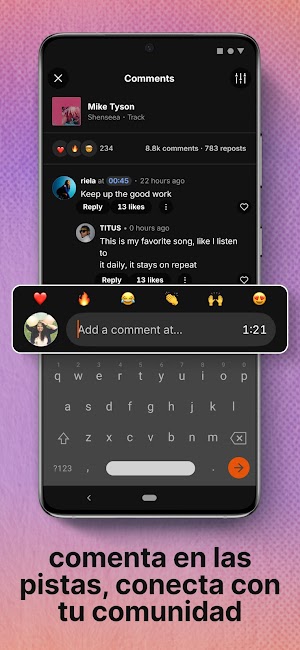 Otro punto relevante es su espíritu comunitario. SoundCloud fomenta la interacción entre oyentes y artistas: puedes dejar comentarios directamente en momentos específicos de la pista, compartir canciones, dar “likes” o seguir perfiles de creadores. Todo esto ayuda a que la plataforma se sienta viva y activa, convirtiéndola en un espacio donde la música no solo se escucha, sino que también se comparte y se conversa.